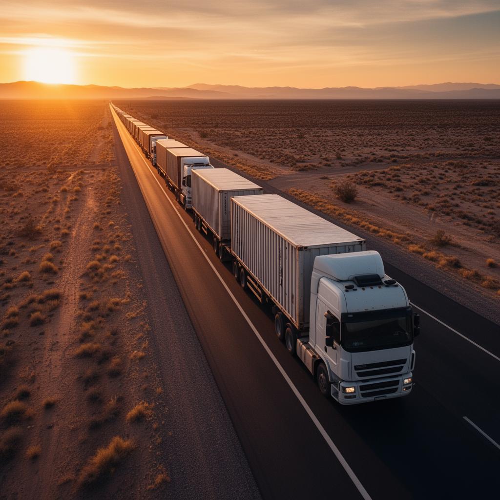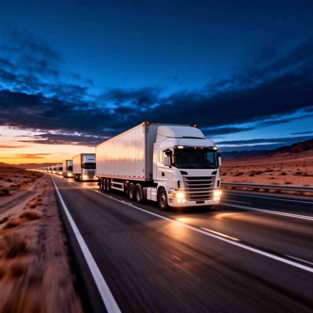 أسطول حديث من شاحنات النقل الثقيل لنقل مختلف أنواع البضائع بين المدن والمناطق بكفاءة وسرعة عالية.